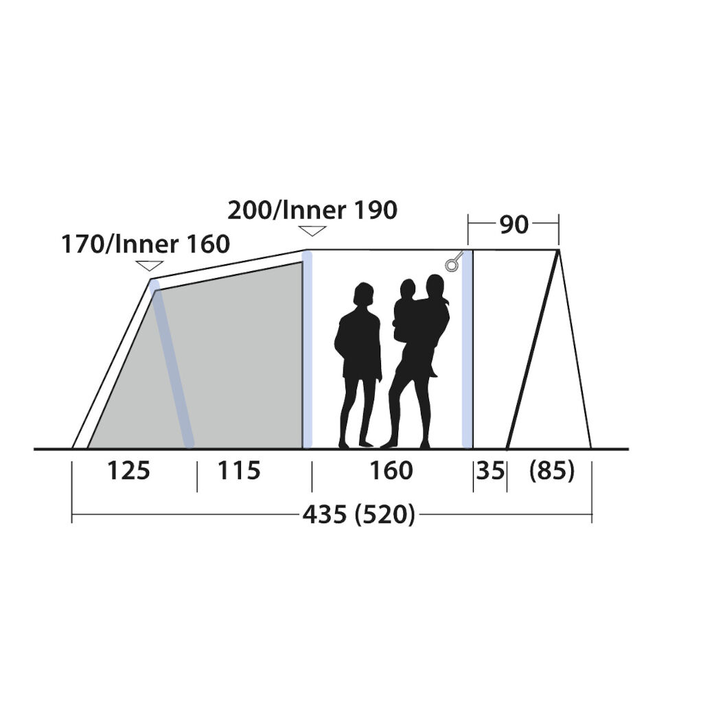 | Indertelt | Et mørkt tagpanel og mørke sider reducerer lysindtrængningen og giver en bedre søvn Åndbar, 100% polyester |