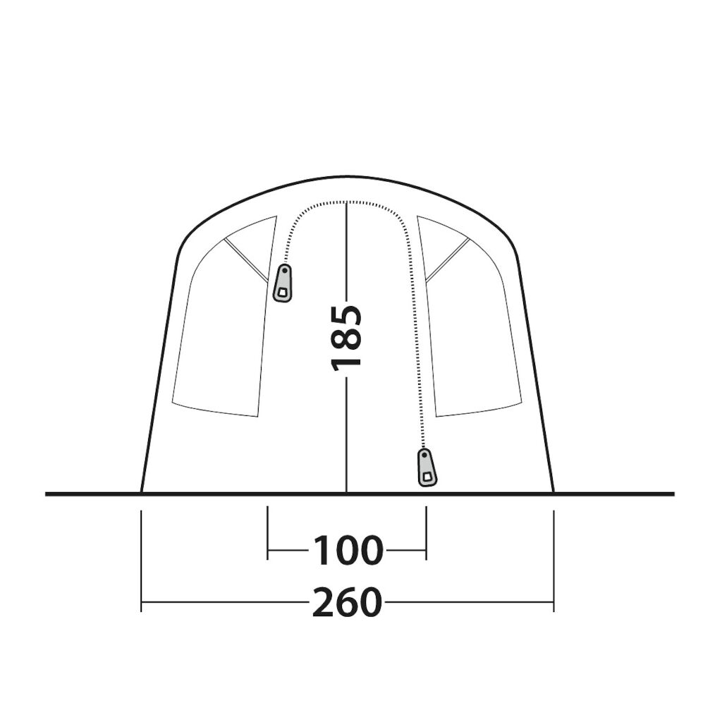 Med Outwell Monterey 4 Air slipper du for besværet med teltstænger under opsætningen. Takket være Rigid Air-teknologien skal du blot fastgøre teltdugen til jorden og pumpe luftkanalerne op med den medfølgende pumpe. Den eneste stang, der bruges, er til soltaget og kan monteres, når teltet er rejst. Det fastsyede gulv giver effektiv beskyttelse mod snavs, træk og insekter, og teltet er klar til brug på få minutter. Teltet har også store tonede vinduer, der lukker blødt, behageligt lys ind, samtidig med at de reducerer indsyn og beskytter mod varme.