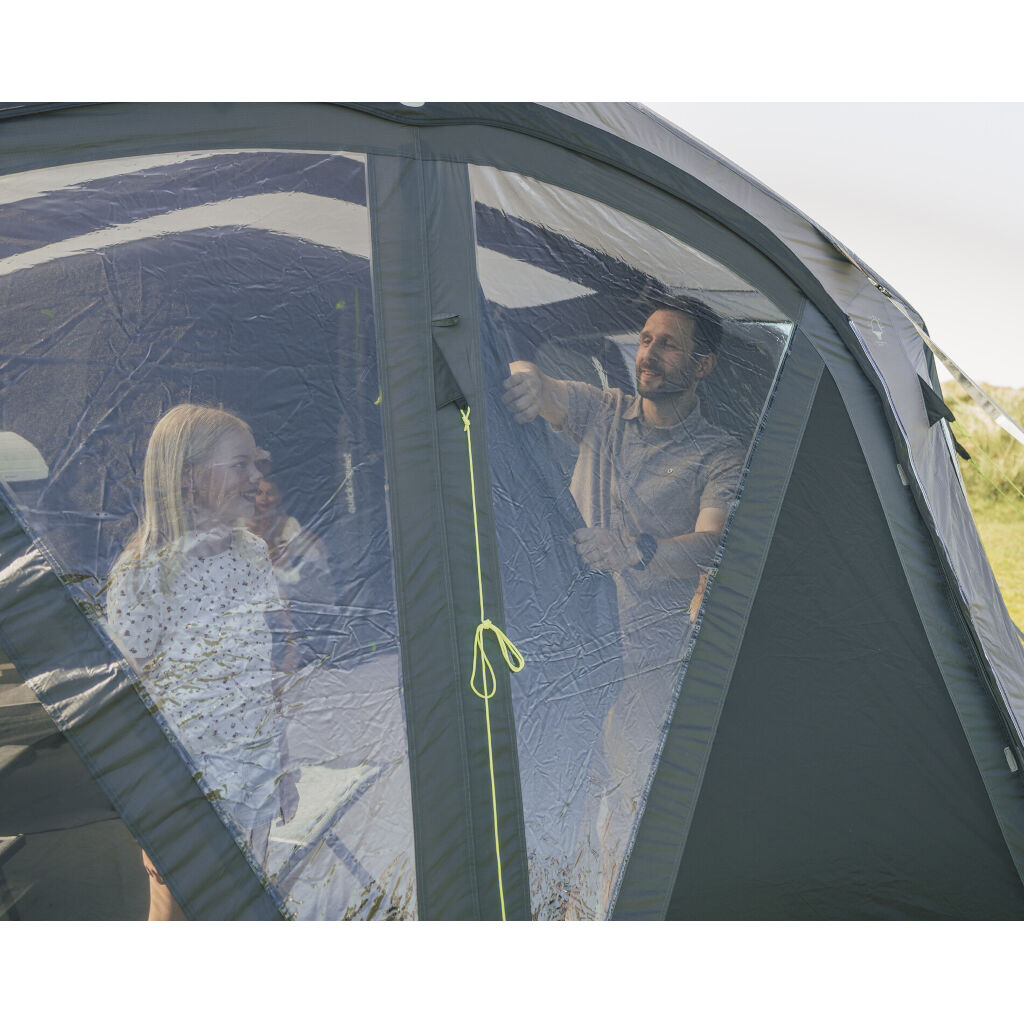 Vermont 7 Air har fremragende ventilation med en stor justerbar ventil bagtil, lave ventilationsåbninger ved vinduerne i opholdsrummet og store netpaneler i fordøren. Sidedøren er også udstyret med en netdør, så teltet kan åbnes yderligere for at holde temperaturen nede – selv når der er mange insekter i omløb.
