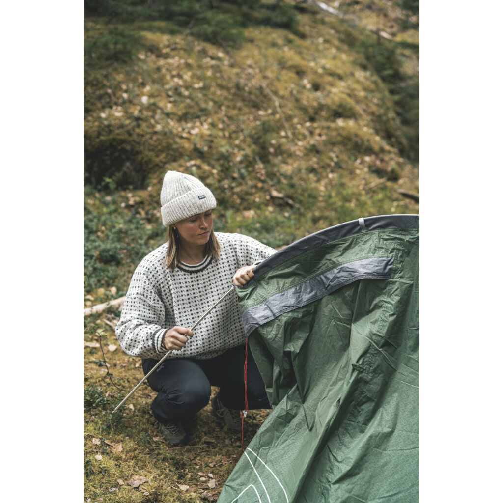 Let og stabilt 1-personers tunneltelt med indgang fra siden. En kraftig dug og aluminiumsstænger giver et meget pålideligt telt til en rigtig lav vægt og pris.
