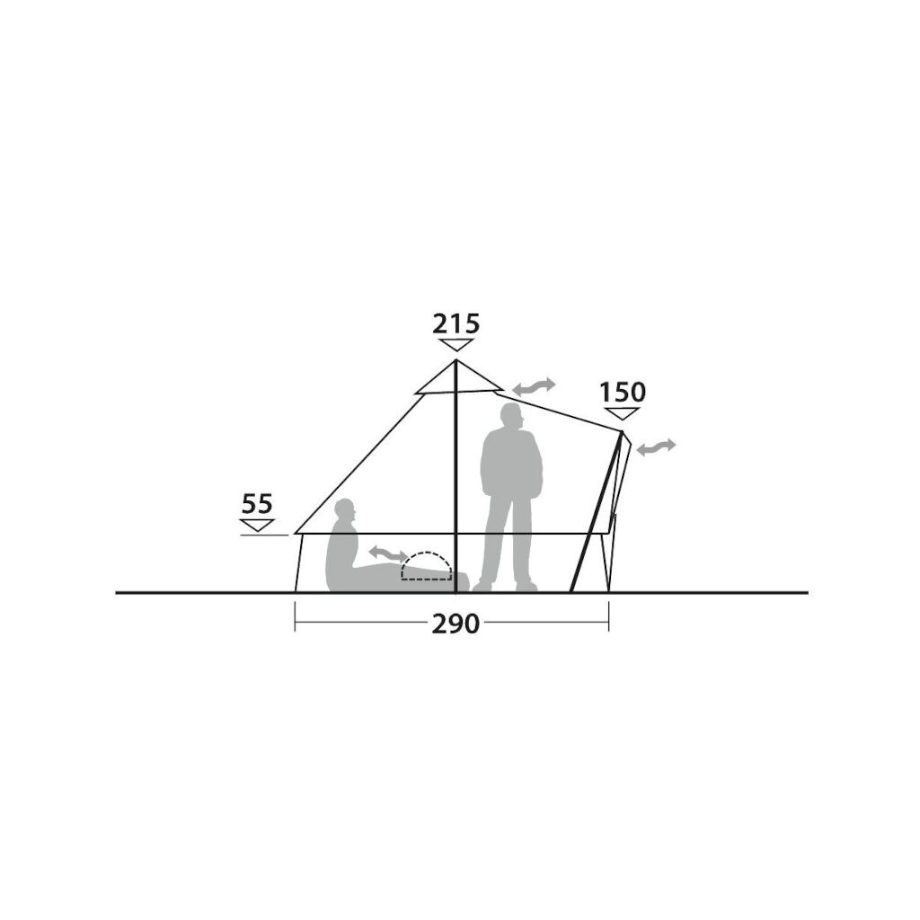 Teltet er let tilgængeligt gennem den store A-formede åbning og på trods af den midterste stang i midten er det rummeligt og nemt at bevæge sig rundt i. Døren er beskyttet af en overgangskant, som gør at den kan holdes åben selv i let regn. Døren er opdelt i to dele, så du kan vælge, hvor meget du vil åbne op. Der er også en ekstra netdør, når du vil lufte teltet.