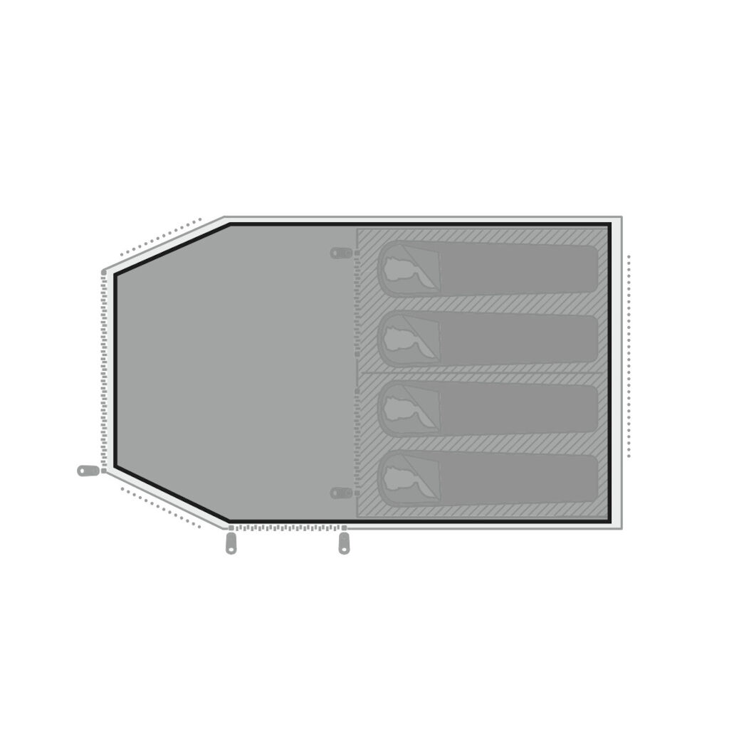 LÆS MEREMåltilpasset underlag, der placeres under familieteltet, inden det rejses. Underlaget holder teltets gulvdug ren og tør og reducerer slitage.