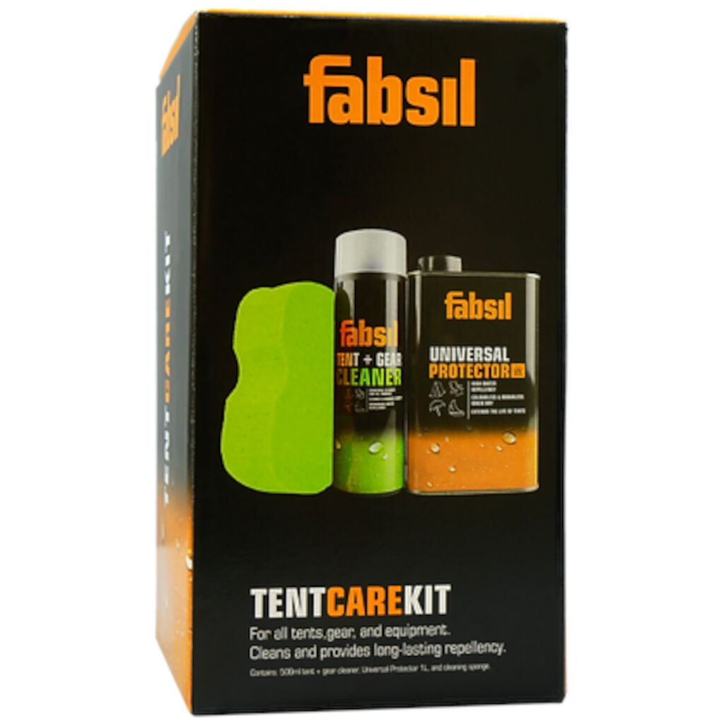 Pletter og snavs på teltet. Fabsil Tent + Gear Cleaner er en løsning, der behandler teltet i to trin. Den renser teltet og andet udstyr med stof, hvilket både gør teltet pænere og fjerner vandabsorberende partikler på dugen og genopretter dens oprindelige egenskaber. Det er også en god forberedelse til at imprægnere teltet, da imprægneringen fungerer bedre, hvis den påføres en ren overflade. Rengør først overfladen og lad den tørre. Påfør derefter Fabsils imprægnering.
