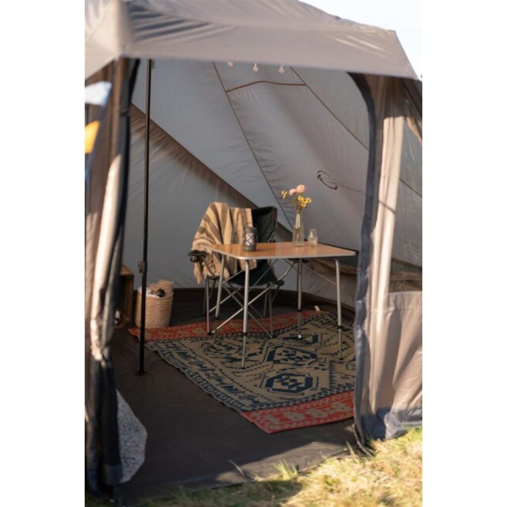 Firkantet universalmåtte fra danske Easy Camp, som både isolerer mod kulden fra jorden og giver en blød og behagelig overflade inde i teltet. Måtten har et stilfuldt design og er både holdbar og nem at rengøre. Takket være materialevalget kan den også bruges udendørs.