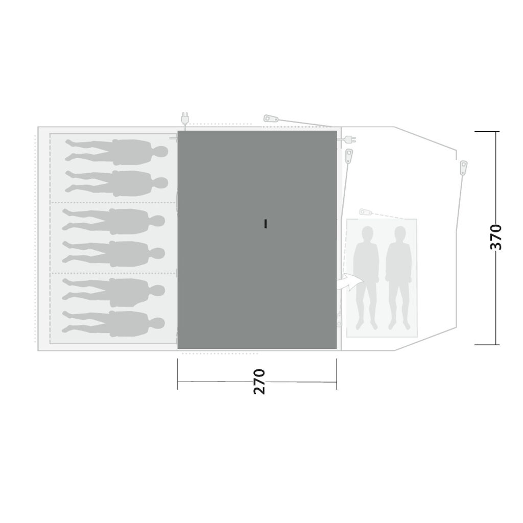 Skab en dejlig stemning og øg komforten i dit Outwell Phoenix 6+2 familitelt med en til teltet måltilpasset måtte.