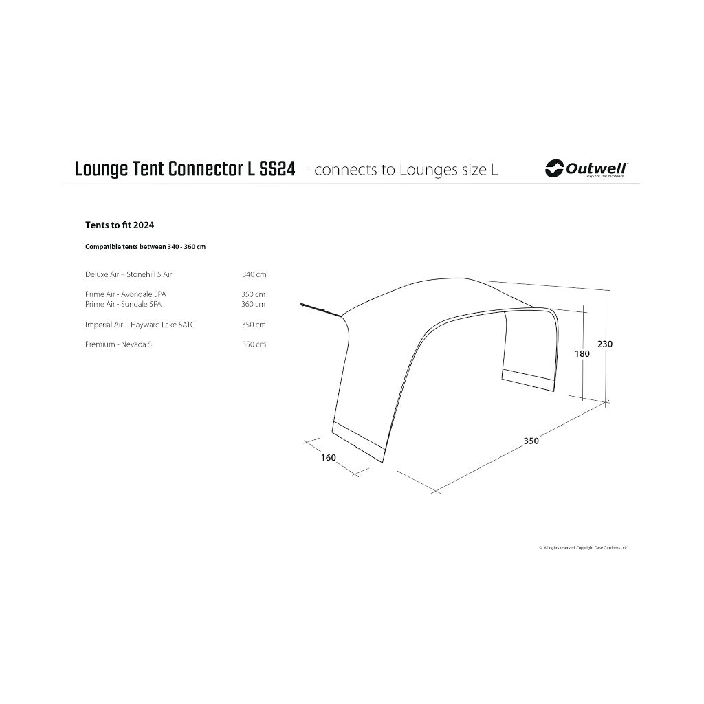 - Giver dig mulighed for at forbinde dit familietelt med Outwell Lounge-serien med størrelse L