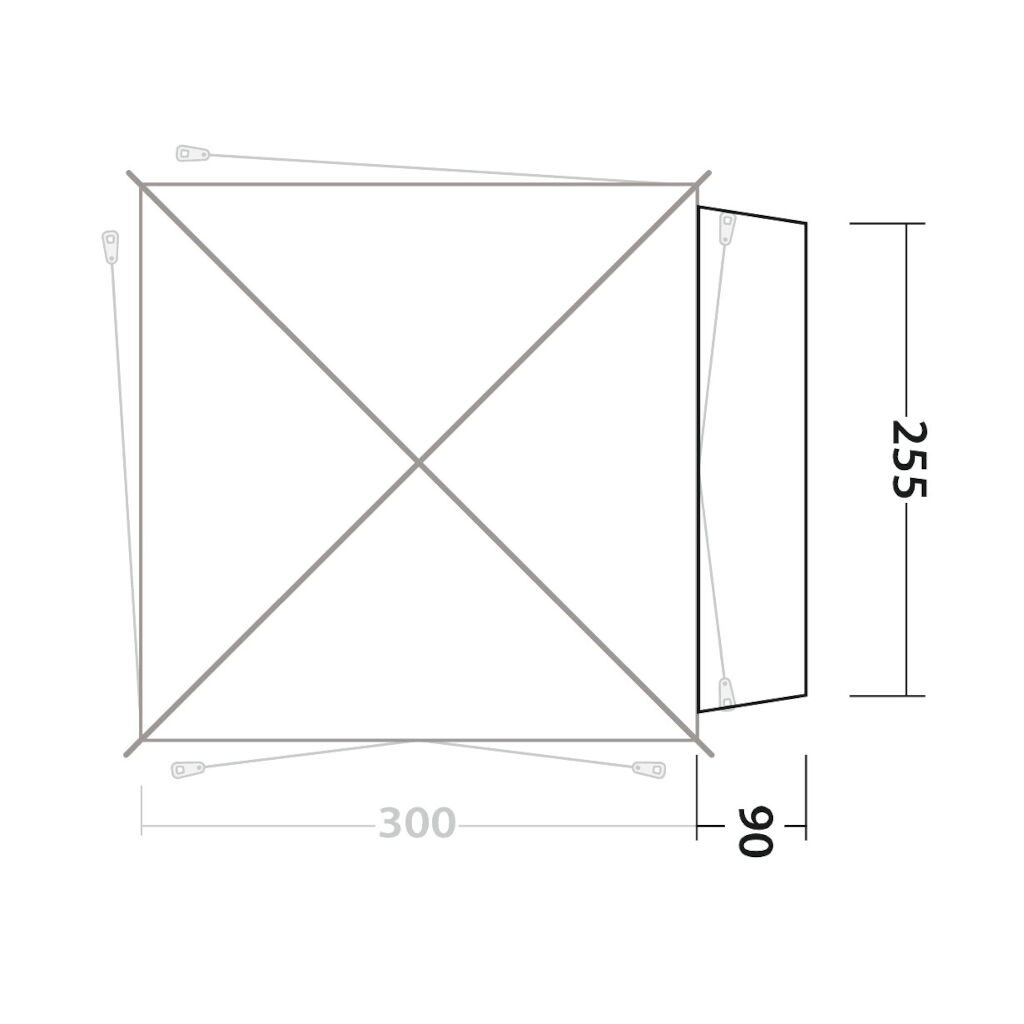 Fastgøres til bilens markisetagliste og til teltet med en lynlås. Giver en vejrsikker forbindelse mellem telt og bil. Perfekt til campingvogne som f.eks. VW California, men passer også til andre modeller.