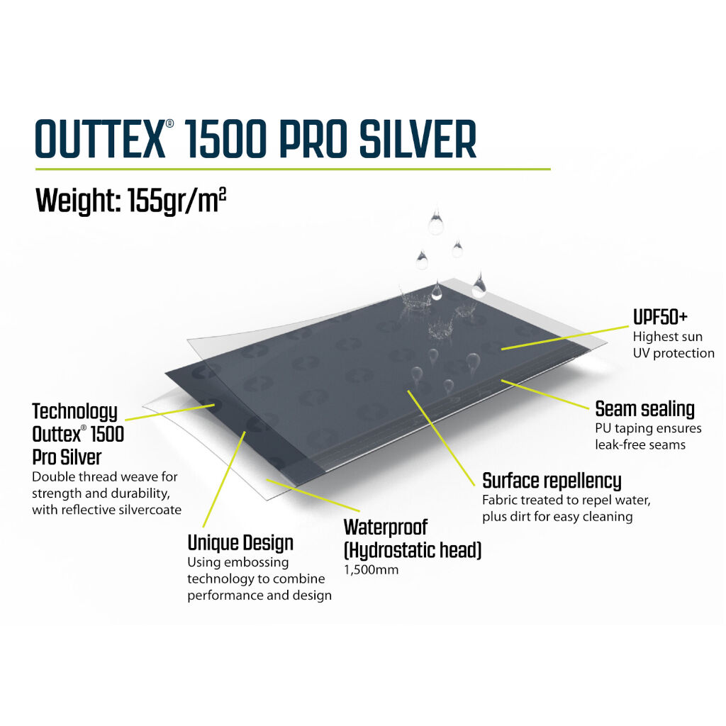 | Oversejl | Outtex® 1500 Select Silver, 100% polyester |