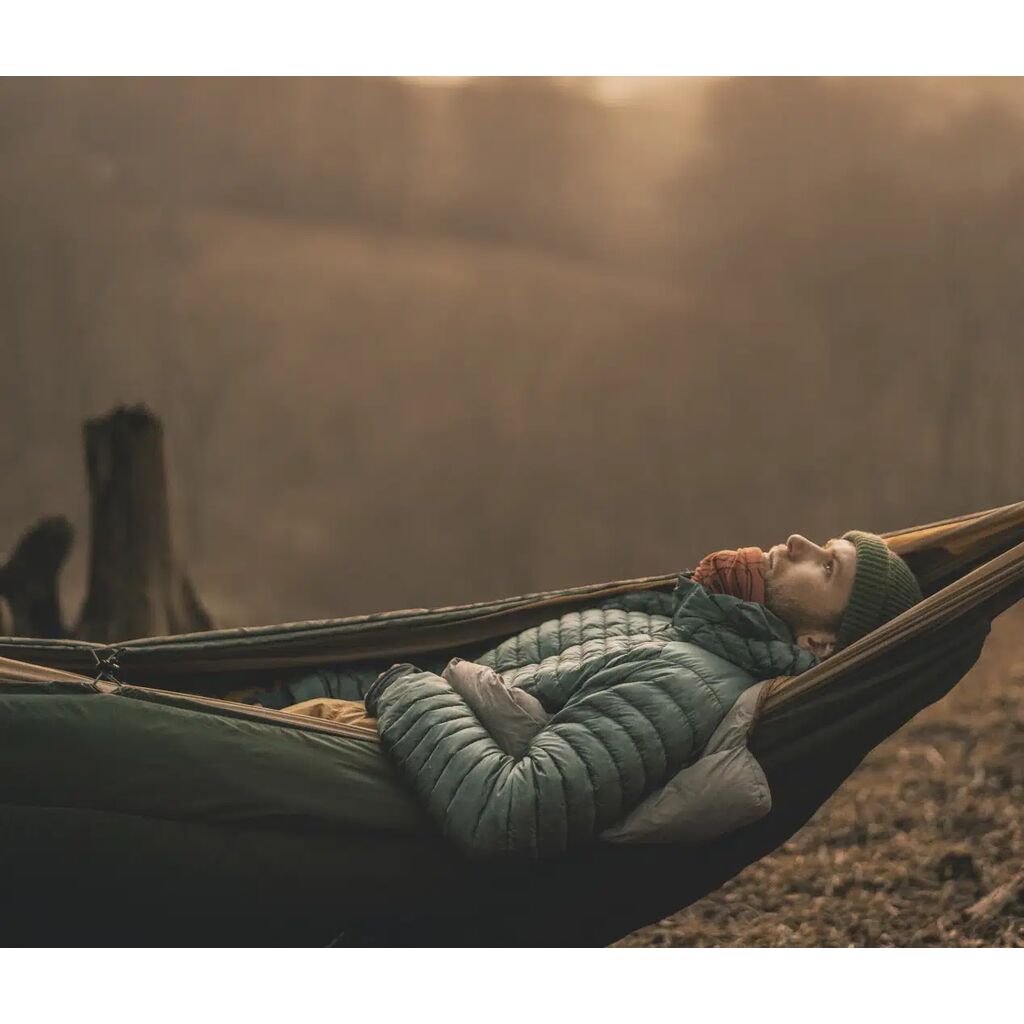 Isolering, der hænger under hængekøjen. Fastgøres let til hængekøjens reb/remme. Stram øverst for at spænde isoleringen over kanten på hængekøjen for maksimal varme og komfort.