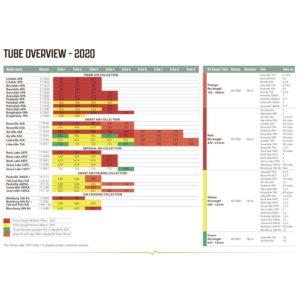 | Indhold | 1 Air Tube 6.00 - 7.55 m, 1 Air Tent Valve, 1 Valve Tool, 2 x adhesive tape strips |