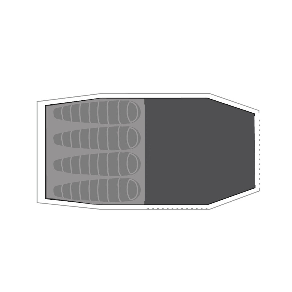 Underlag/footprint til Robens Cima Versa 4 teltet. Reducerer fugt fra jorden og giver en tør overflade til opbevaring og madlavning. Beskytter også teltet mod slid og skader.