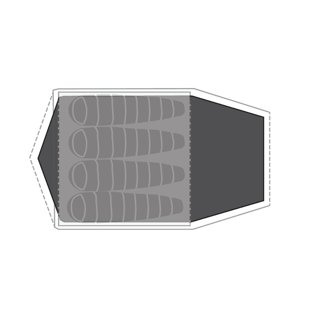 Underlag/footprint til Robens Lago Flex 4 teltet. Reducerer mængden af fugt, der trænger op fra jorden, og giver en tør overflade til opbevaring og madlavning. Beskytter også teltet mod slid og skader.