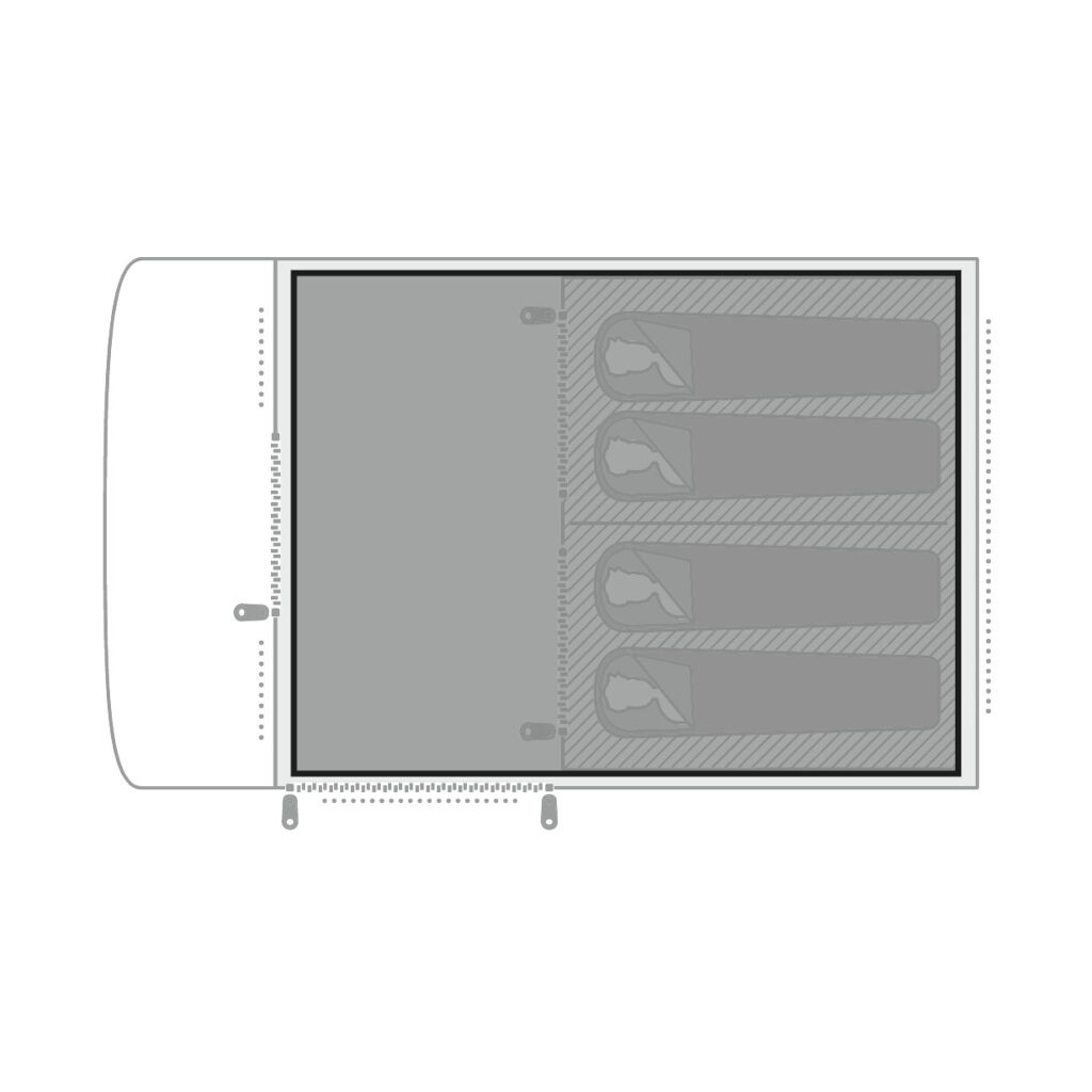 LÆS MEREMåltilpasset underlag, der placeres under familieteltet, inden det rejses. Underlaget holder teltets gulvdug ren og tør og reducerer slitage.