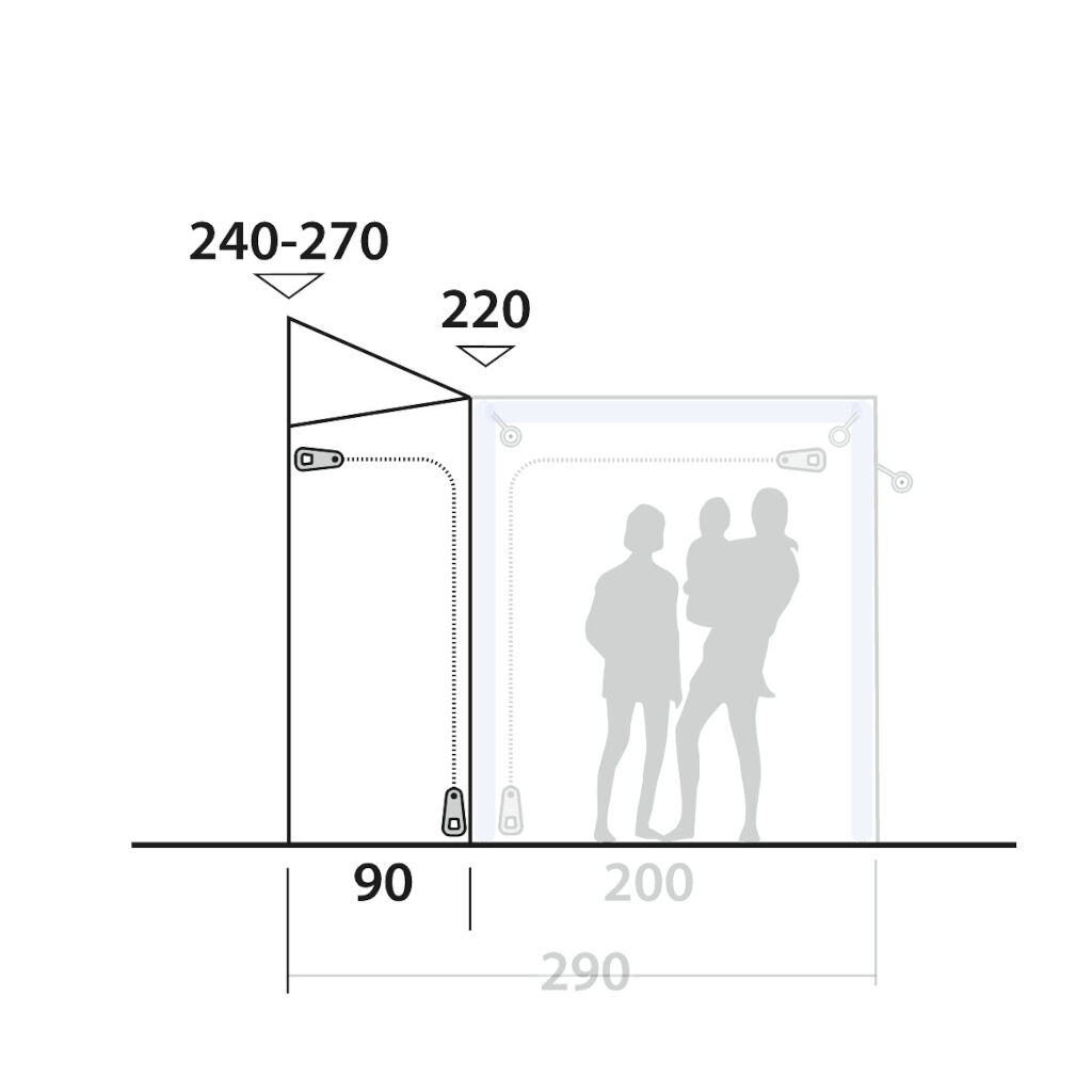 Outwell Parkville 200SA Tall Connection gør det muligt at tilslutte Outwell Parkville 200SA teltet til biler med en tilslutningshøjde mellem 240 - 270 cm. Perfekt til dem, der har højere varevogne såsom Ducato, Sprinter eller lignende køretøjer. Monteres nemt som en almindelig sluse.