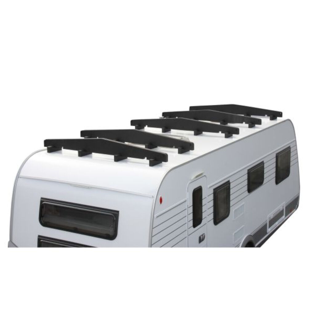 2-pak tagdistancer til overtræk til autocampere og campingvogne, som gør, at vandet løber af, og dermed mindsker risikoen for vandpytter. Passer til både campingvogns- og autocampertage. Gavlhøjden på ca. 21 cm øger højden, så tagluger, vinduer og ventiler frit kan være under overtrækket. Distancen er opdelt i to dele på ca. 120 cm og monteres nemt sammen og stabiliseres med 4 fødder. Placering og antal af distancer afhænger af køretøjets mål.