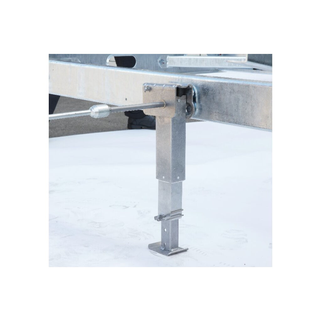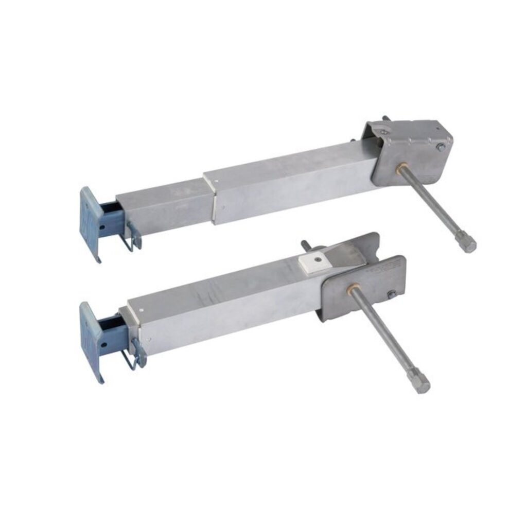 Støtteben til montering bag på autocampere med AL-KO AMC chassis. De kan også monteres på andre rammer, men dette kræver boring af huller og muligvis ekstra forstærkning. Støttebenene drejes manuelt op og ned (Bemærk: Vejl er ikke inkluderet i leveringen). I endepositionen drejer vejen opad og låser sig automatisk, så benene ikke utilsigtet folder ned under kørsel. ClickFix-støttebenene har også en integreret sikkerhedsmekanisme, der gør det muligt at køre afsted, selv hvis støttebenene er udfoldet, så skader på både støtteben og autocamper undgås.