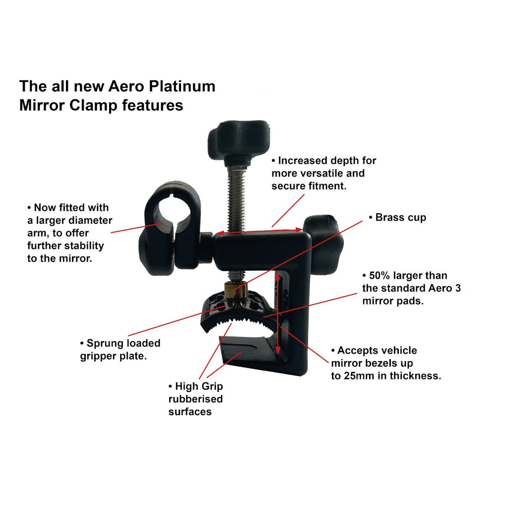 Milenco Aero Platinum er en videreudvikling af den bedst sælgende Aero 3, som takket være en ny konstruktion på beslaget også passer til de tilspidsede bakspejle, som findes på mange nyere biler. Med fleksible, gummibelagte, rustfri, elastiske grebplader, der er 50 % større end på den almindelige model (Aero 3), giver det også en endnu mere stabil fastgørelse. Fleksibiliteten i fastgørelsen gør, at beslaget både er vinklet og formet efter spejlrammen, hvilket øger kontaktfladen betragteligt, selvom spejlets form er tilspidset. Platinklemmen er også blevet forstørret og kan nu håndtere spejlerammer op til 25 mm i tykkelse. Armen er også lidt større, så den nu har en større rækkevidde til også at fungere på campingvogne op til 2,55 meter brede.