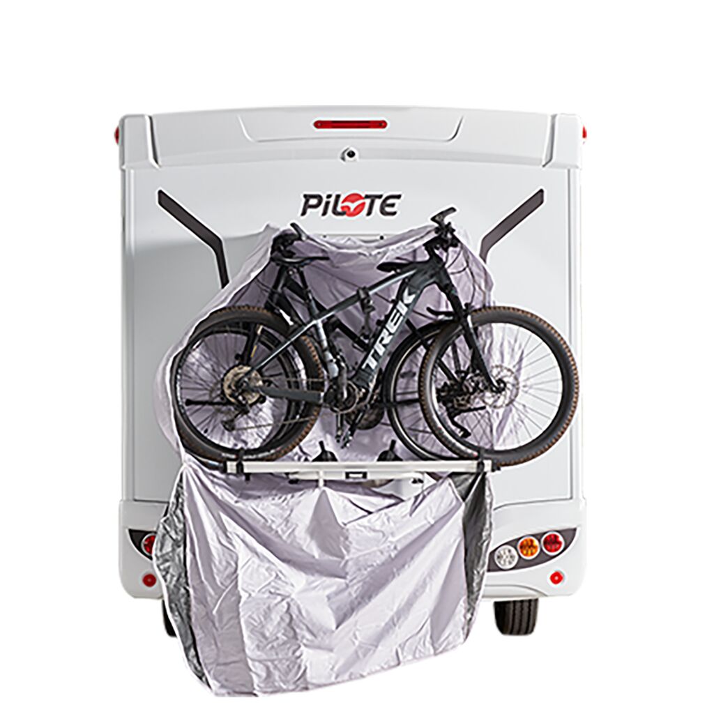 Cykelbetræk til 1-3 cykler med indsyet lomme til advarselsskilt og spændestrop for nem fastgørelse. Stoffet har ripstop og er vandafvisende.