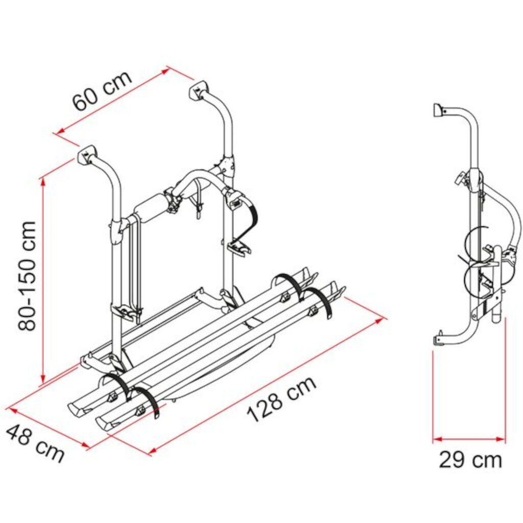 Cykelstativ fra Fiamma, som er højdejusterbart mellem 80-150 cm og har et kompakt design, der kun rager 29 cm ud fra væggen, når det er foldet op. Stativet rummer maksimalt to cykler og har en maksimal belastning på 35 kg og en vægt på 5,4 kg. Cyklerne er sikret med de medfølgende to Quick Pro Rails og Bike Block Pro med tilhørende stropper og beslag. Perfekt til dem, der søger et praktisk cykelstativ til små rum.