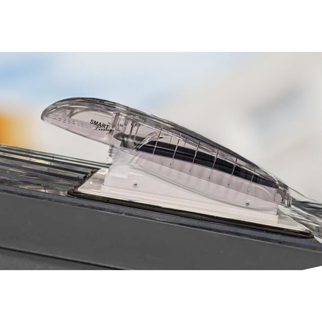 Forbedr komforten i din campingvogn eller autocamper med et elektrisk soltag/loftventilation fra Svenska Smart Living. Soltaget har indbygget regnbeskyttelse, der gør det muligt at bruge ventilatoren i al slags vejr og endda under kørsel. Ventilatoren er termostatstyret og kan nemt justeres via panelet i loftet eller med den medfølgende fjernbetjening. Indvendigt, ud over kontrolpanelet, er der indbygget belysning og mørklægningsgardin. Velegnet som udskiftning til tagluger med et hulstørrelse på 40 x 40 cm. Et meget godt alternativ til en AC.