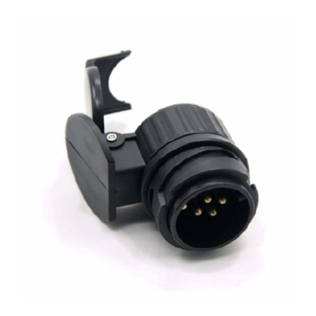 Kort släpadapter för bilar med 13-polig kopplingsdosa och har en anslutnings till husvagn eller släp med 7 polig stickkontakt.