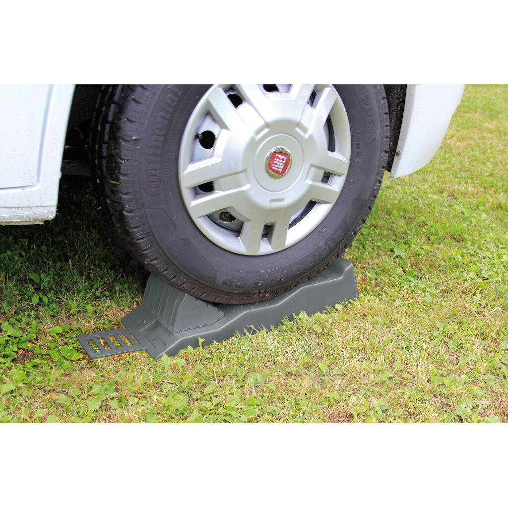 To stopklodser, der var fastgjort til Fiamma niveaublokken Level up for at sikre hjulets position på niveaublokken. Stabil konstruktion af UV-bestandig polyethylen.