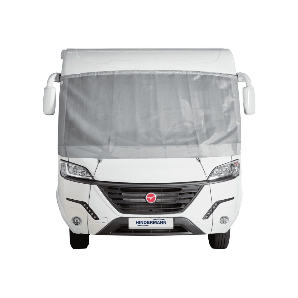 Universal solbeskyttelse fra tyske Hindermann, der er en fuldt integreret solskærm, som monteres på ydersiden af autocamperen. Solbeskyttelsen holder solens stråler ude, samtidig med at man stadig kan se ud fra autocamperens indre. Dækker forruden.