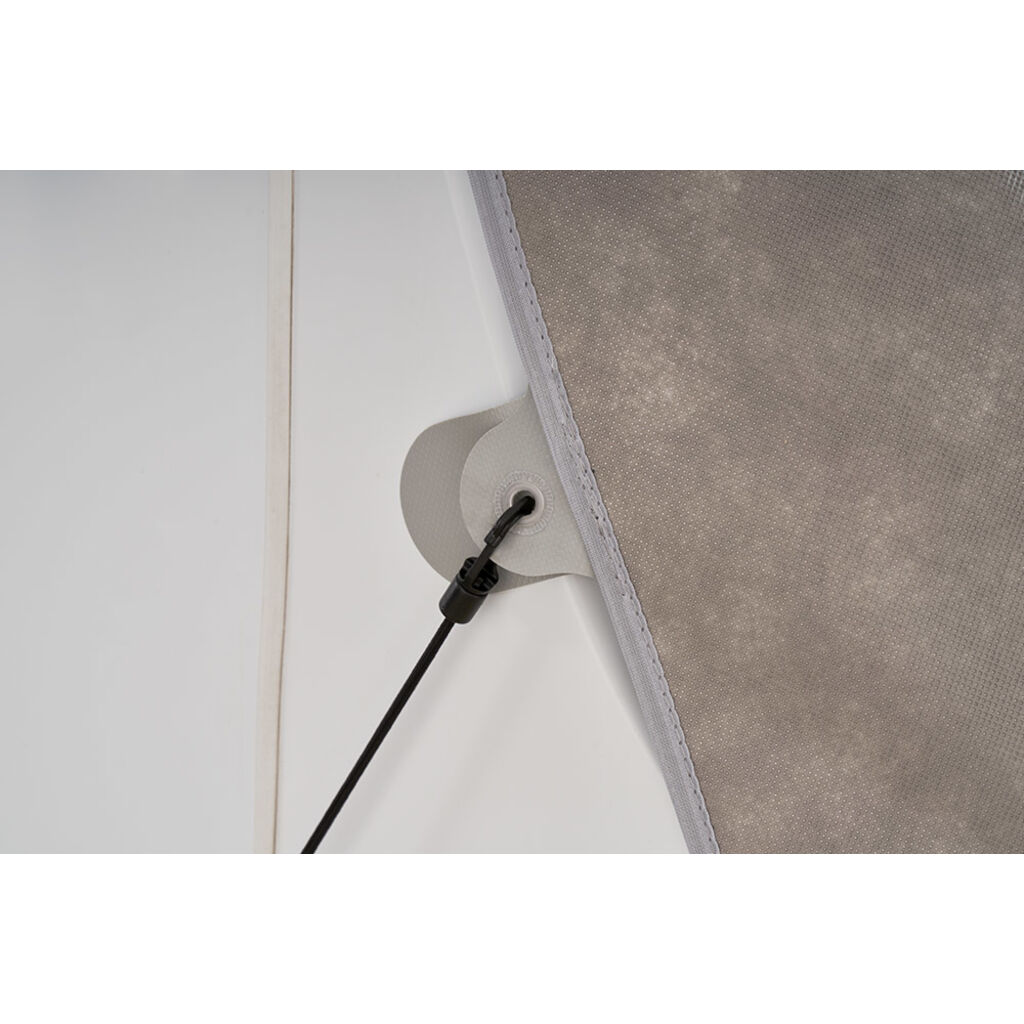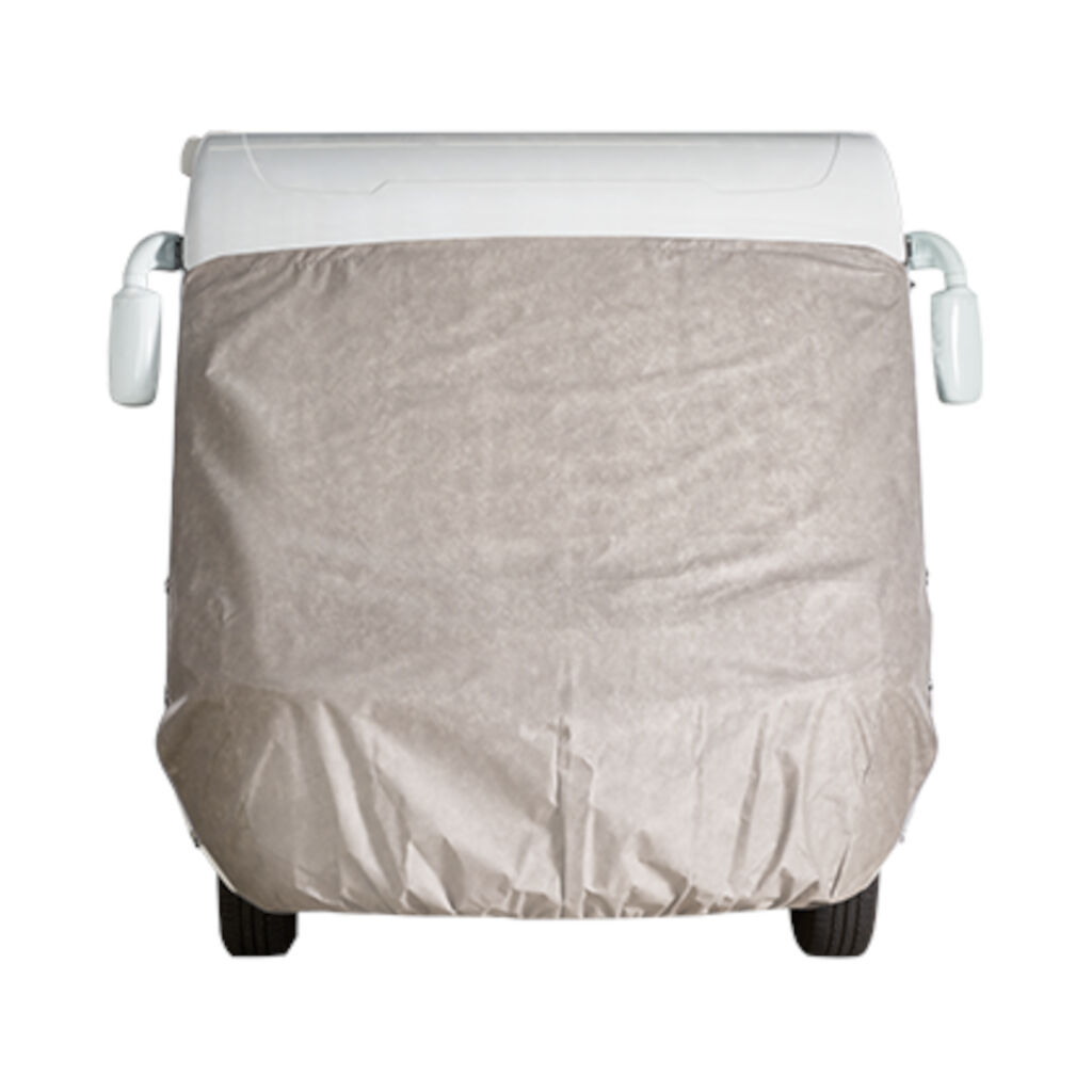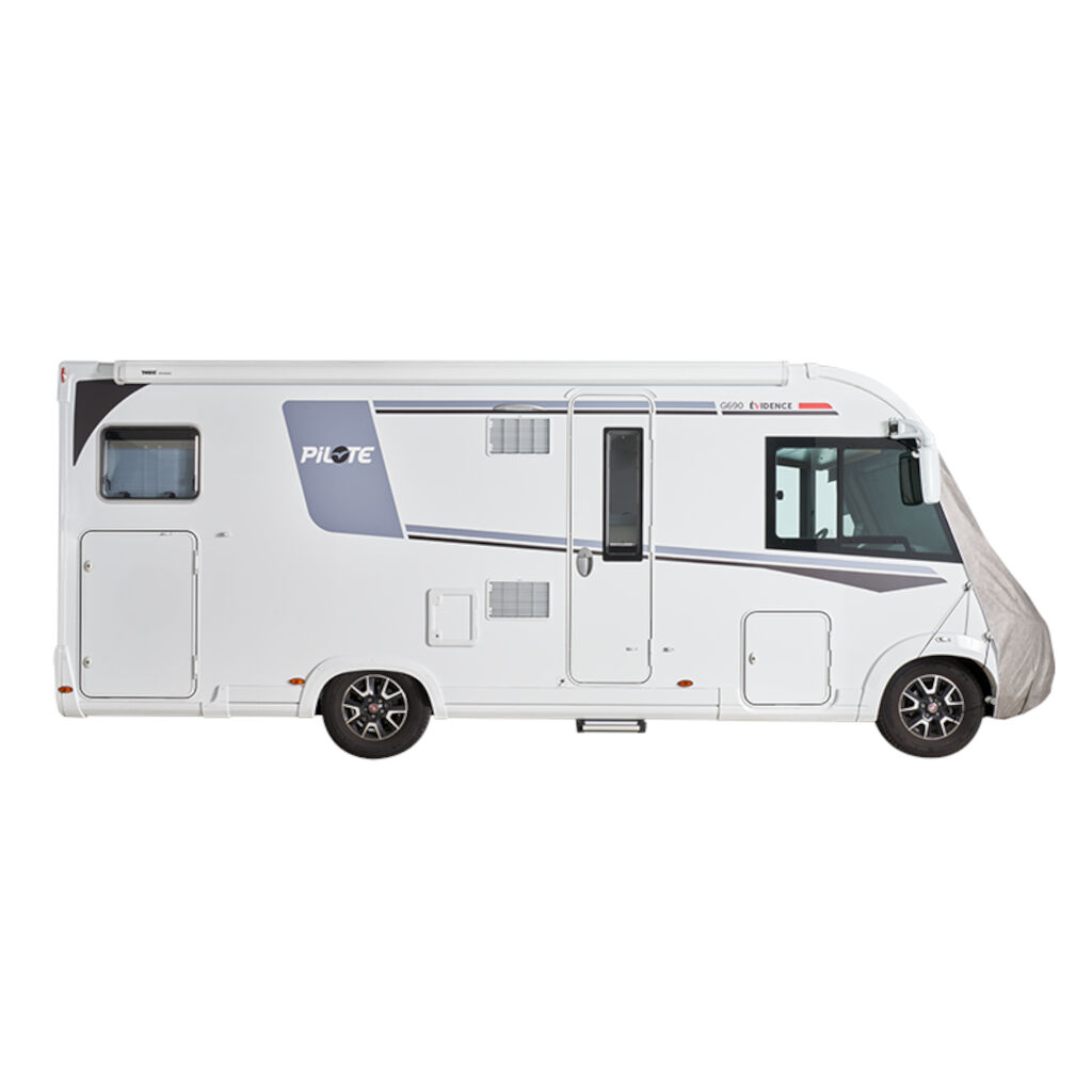 Universelt frontbeskyttelse til integrerede autocampere fra Hindermann, tilgængelig i 2 størrelser. Beskytter autocamperen mod snavs, sne og isophobning og er imprægneret for at afvise vand og snavs, så alger, mos og blomsterpollen ikke kan få fodfæste. Den fastgøres på siderne med løkkede snore og gummispændere. Et integreret elastisk bånd giver en forsegling langs den nedre kant, og elastiske spænder forsegler langs den øvre kant. Beskyttelsen fastgøres ved spejlfæsterne, som er placeret øverst. Perfekt til langvarig beskyttelse, når autocamperen ikke er i brug.