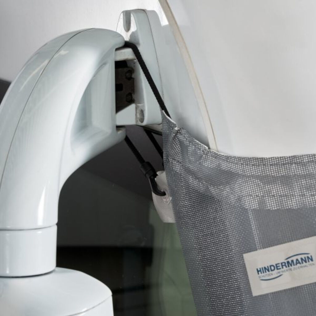 Universal solsejl fra tyske Hindermann, som er en fuldintegreret solsejl, der fastgøres udvendigt på mobilhomet. Solafdækningen holder solens stråler ude, samtidig med at du stadig kan se ud fra indersiden af autocamperen.