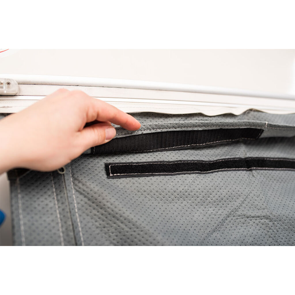 - Dobbelt lag og forsegling med velcrobånd øverst beskytter mod lækage gennem vinduesåbningen