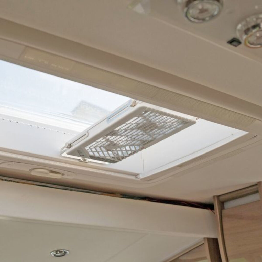 Støjsvag og justerbar loftventilator, designet til montering på tagluger / tagvinduer med en bredde mellem 38 - 55 cm. Passer til tagluger som Dometic Mini Heki, MPK og andre med lignende mål. Luftstrømmen kan justeres i seks trin via fjernbetjening. Perfekt til dem, der leder efter en støjsvag og effektiv ventilator, hvor man kan åbne/lukke taglugen uden at fjerne ventilatoren.