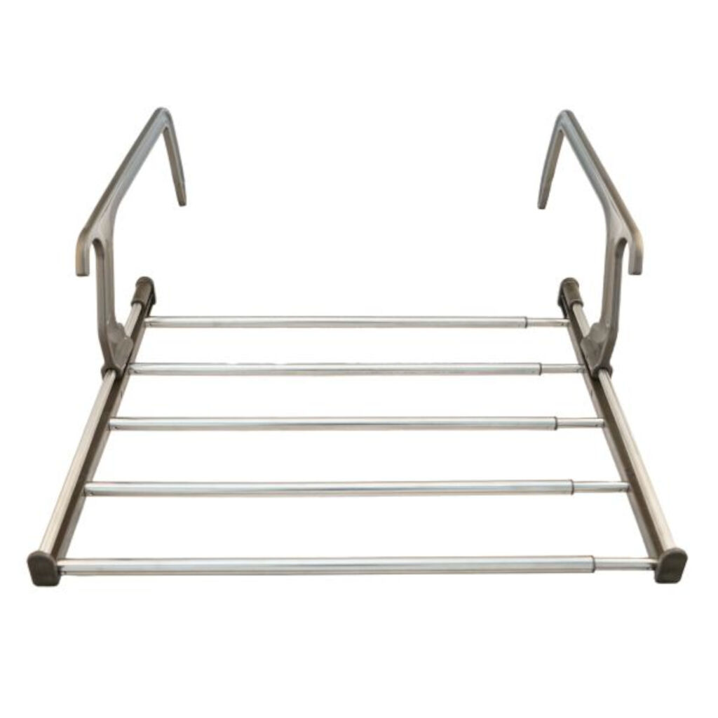 Teleskopisk tørrestativ, der kan bruges på døre, skabe og vinduer. Perfekt til campingvognen eller autocamperen.