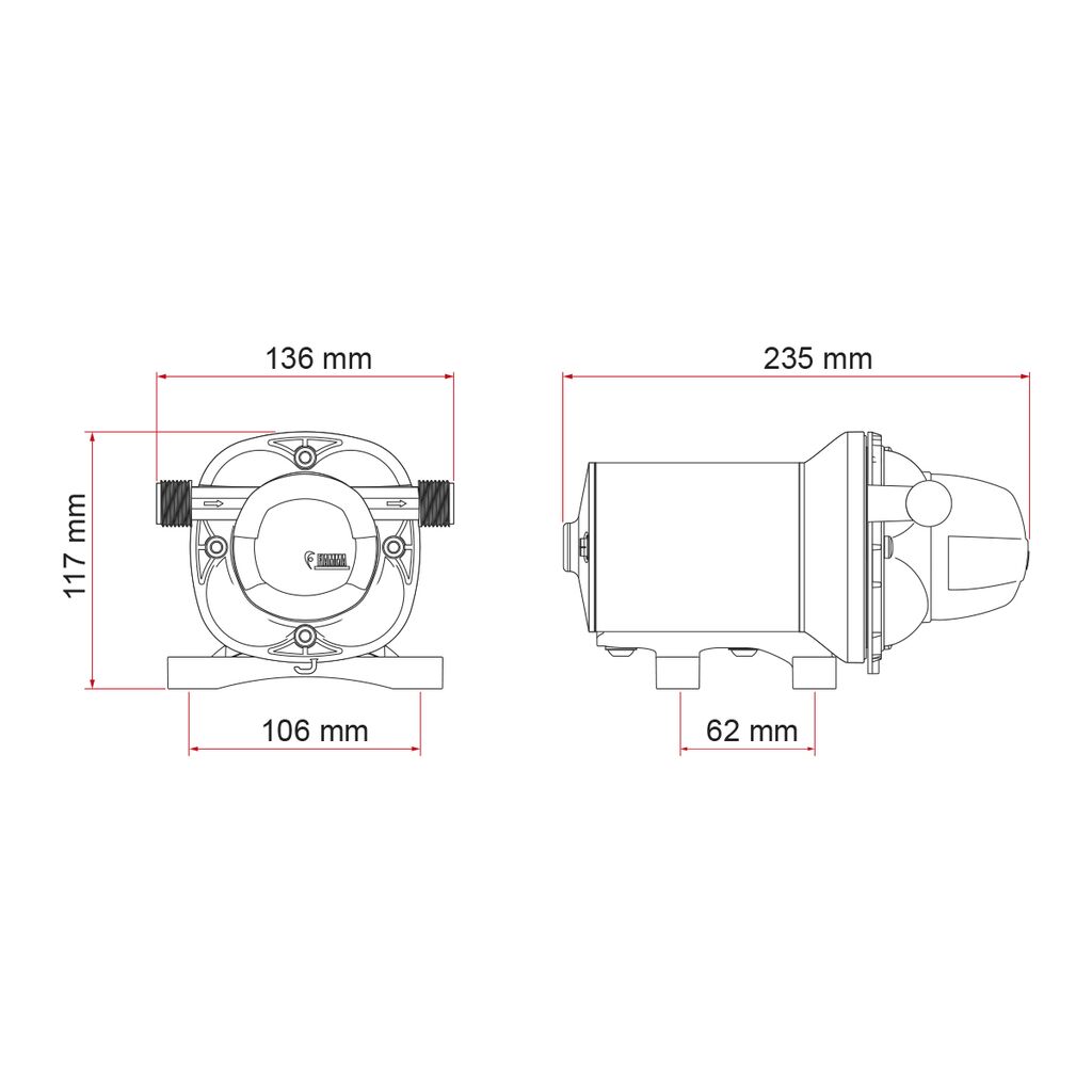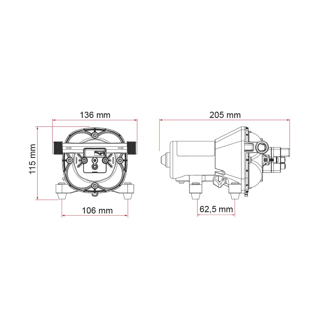 Trykpumpe til drikkevand i campingvogn, autocamper og fritidshus. Pumpen har fire kamre for højere tryk og en étstøbt membran for at mindske risikoen for lækage. Den er designet til tryksatte systemer og starter automatisk, når en vandhane åbnes og trykket falder. Pumpen leverer jævn og støjsvag drift, hvilket forbedrer komforten i både køkken og badeværelse.