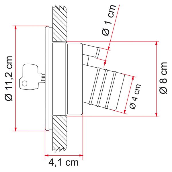 Komplet påfyldningsluge fra Fiamma til ferskvandstank. Leveres med lås, to nøgler, ventilationsrør og forbindelsesrør. En sikker og holdbar løsning til nem påfyldning.