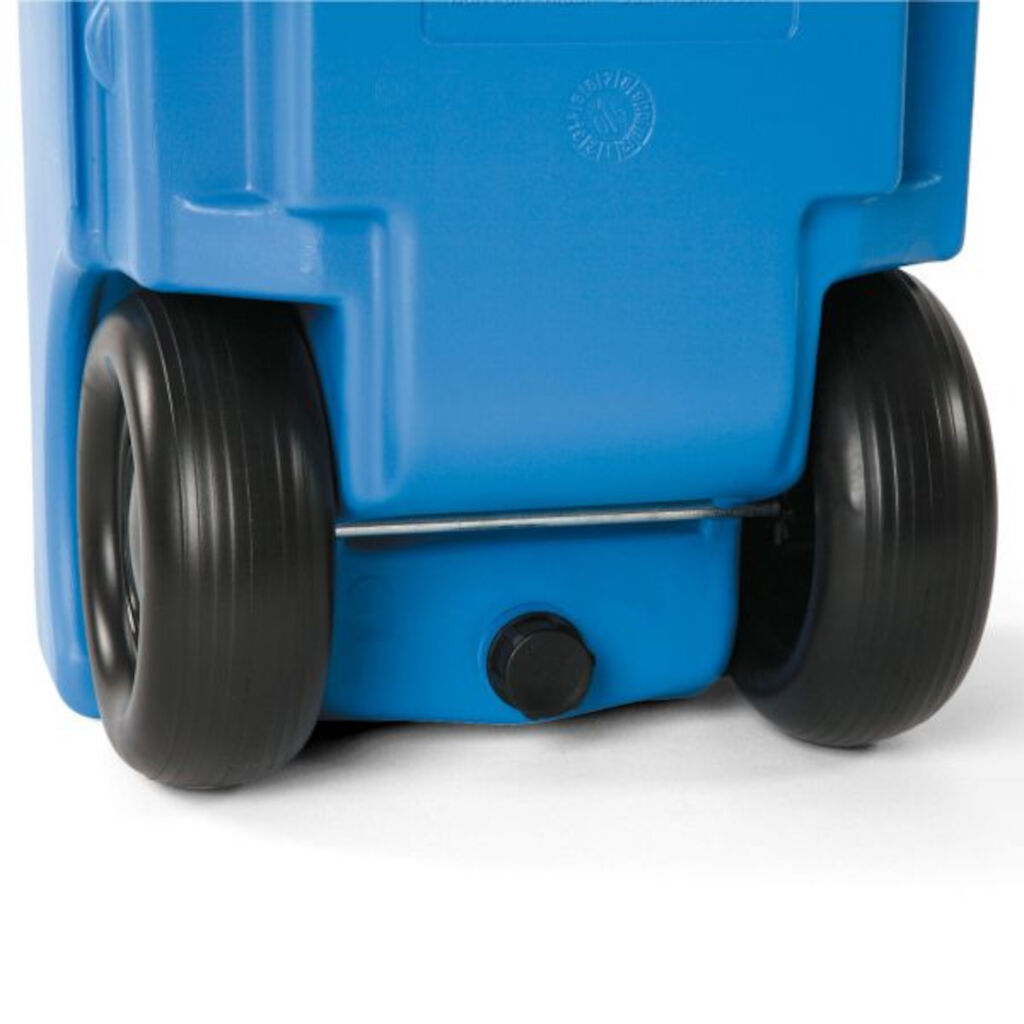 Ferskvandstank med hjul og håndtag men rumfang på 23 liter.